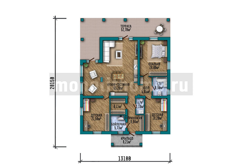 Дом из крупноформатных Прайм одноэтажный 15х15