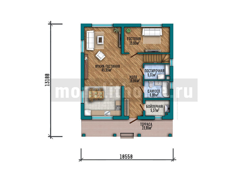 - Размер дома 13х13 м