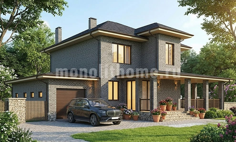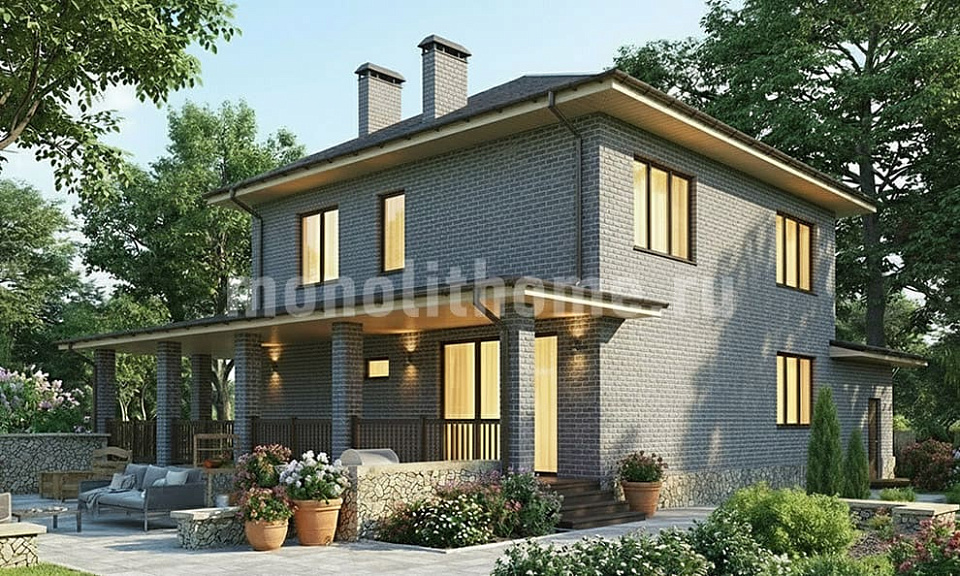 Дом из щелевого кирпича Вешки 2 двухэтажный 14х14
