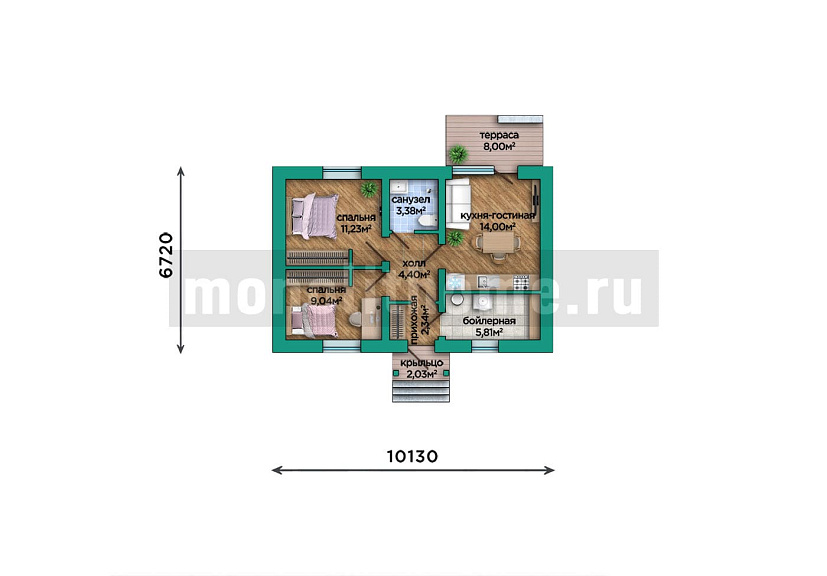 Дом из теплоблоков Линдер одноэтажный 7x9
