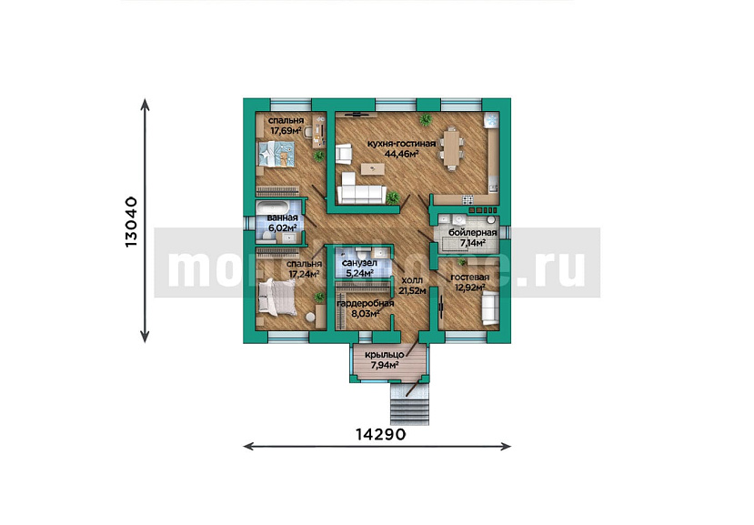 Дом из крупноформатных Лофтен одноэтажный 14х14