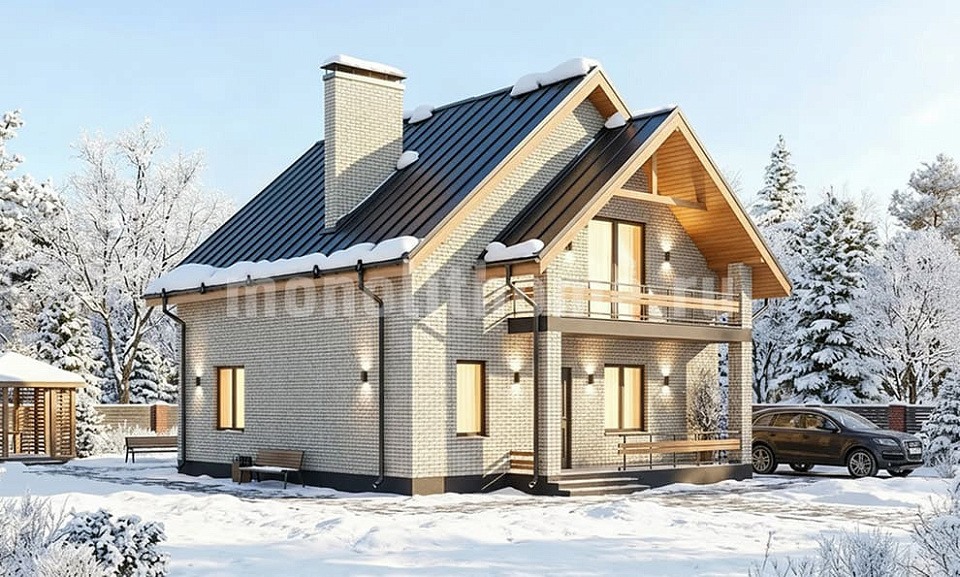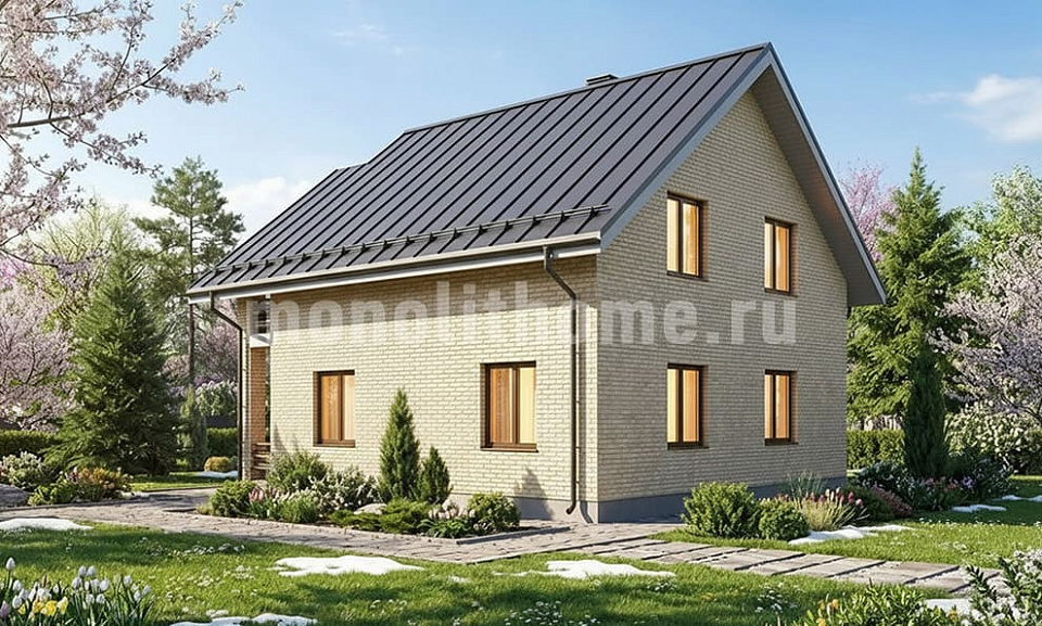 Дом из крупноформатных Лумион одноэтажный с мансардой 10х10