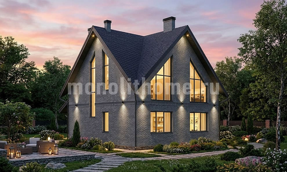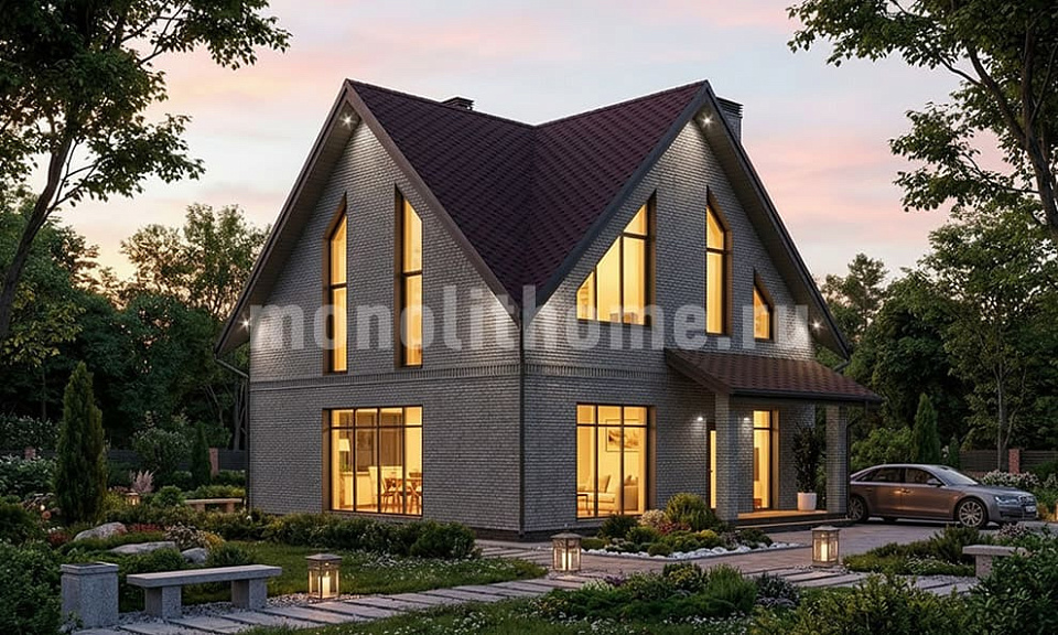 Дом из крупноформатных Магнум одноэтажный с мансардой 10х10