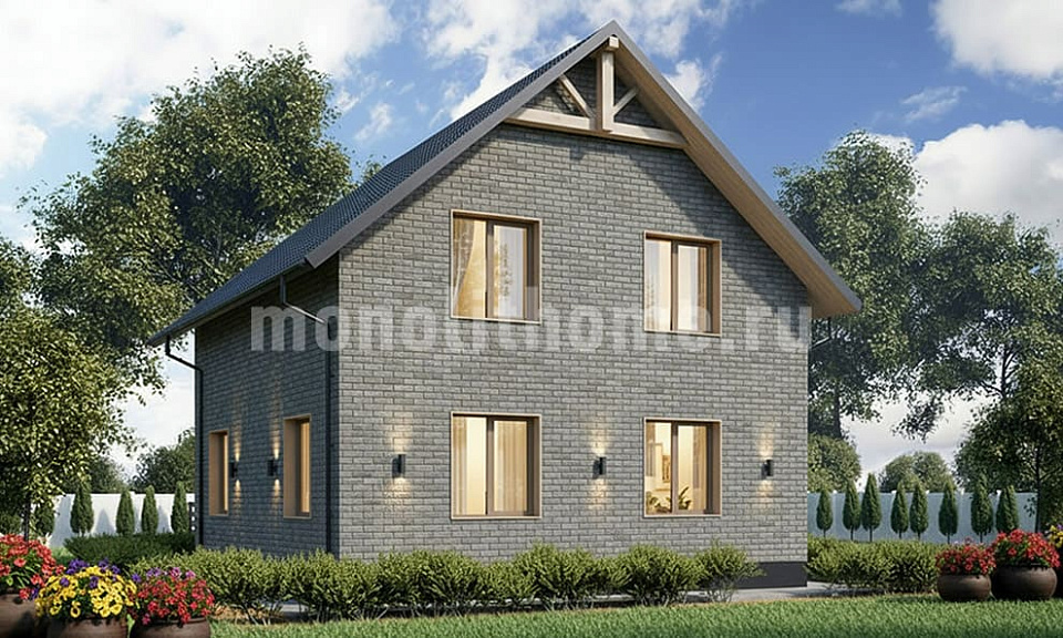Дом из газобетона Мещёра одноэтажный с мансардой 9х9