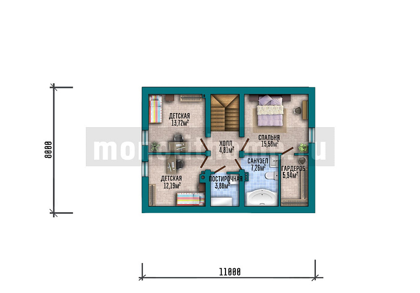 Дом из профилированного бруса Каньон-2 одноэтажный с мансардой 10х10