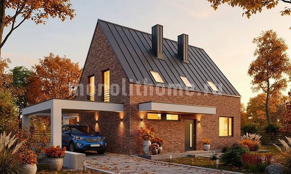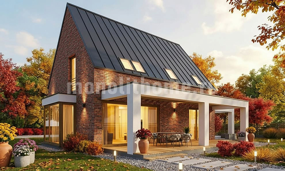Дом из крупноформатных Мерис одноэтажный с мансардой 10x12