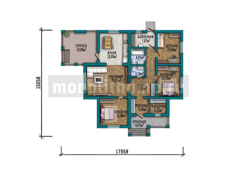 Дом из керамических блоков Мирадор одноэтажный 13х13