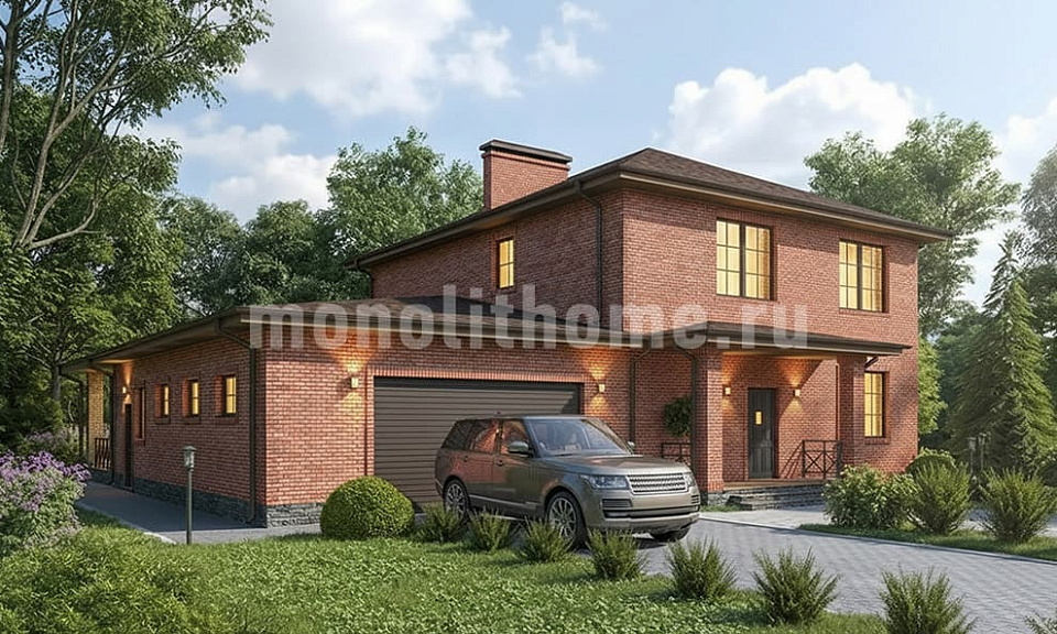Дом из поризованного кирпича Лахти 7 двухэтажный 14х14