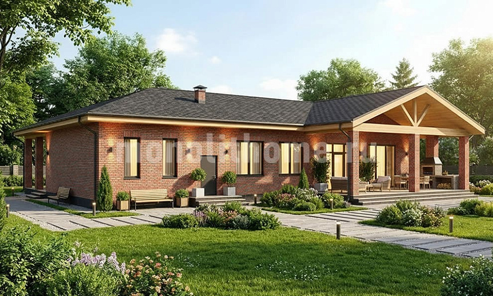 Дом из полнотелого кирпича Элефант 1 одноэтажный 15х15