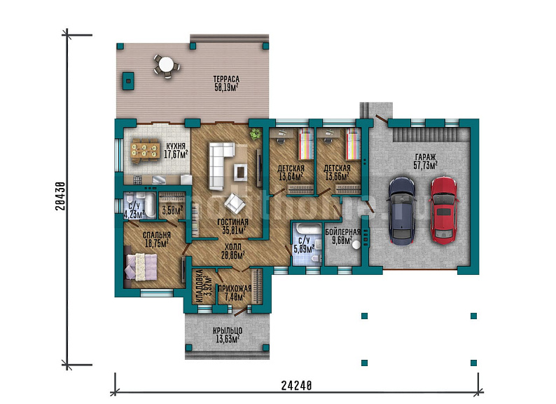Дом из пеноблоков Элефант 7 одноэтажный 14х14