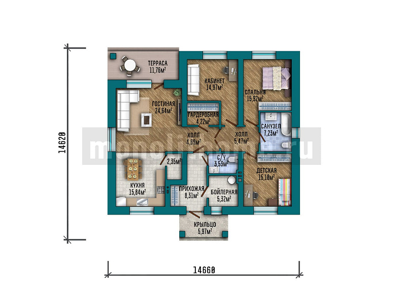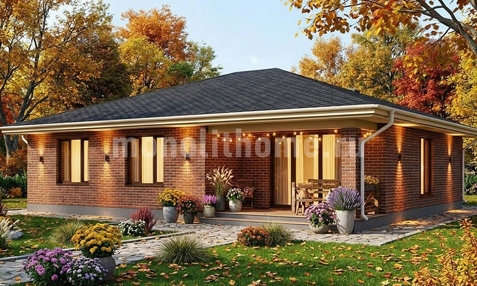 Дом из поризованного кирпича Кантри 2 одноэтажный 14х14