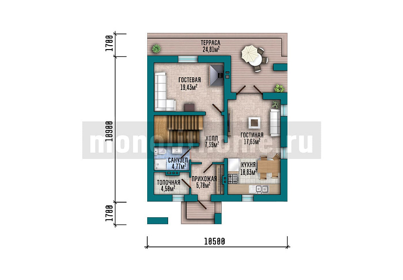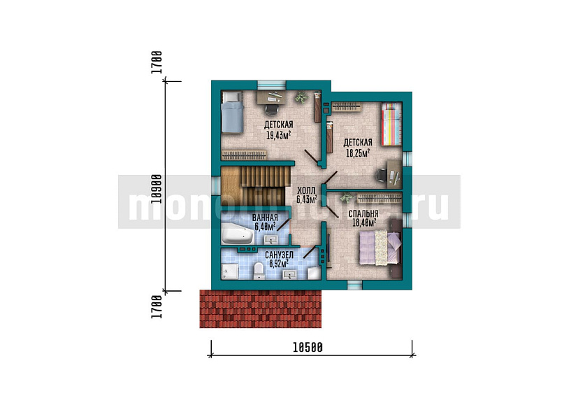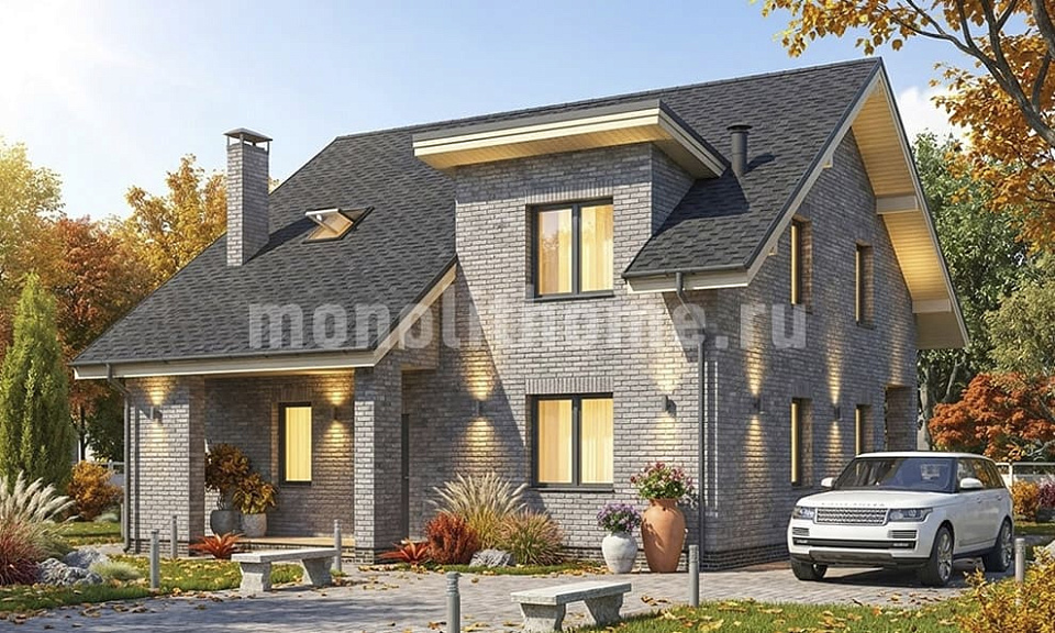 Дом из газобетона Зенит одноэтажный с мансардой 10х10