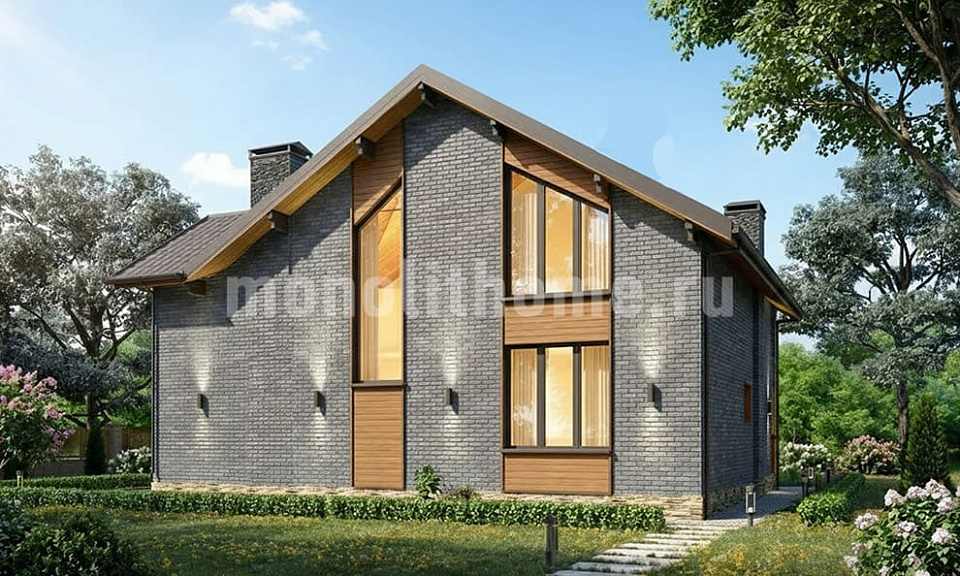 Дом из газобетона Шарапово-2 одноэтажный с мансардой 11х11