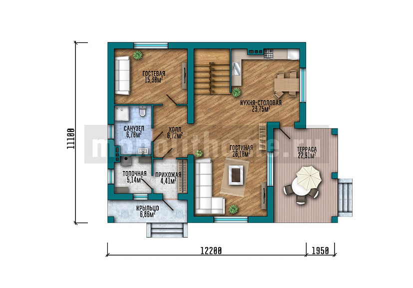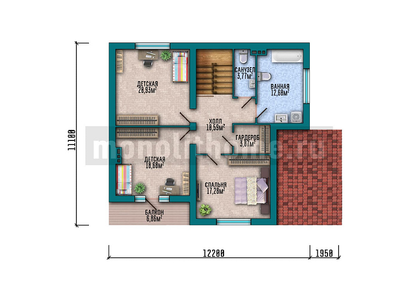 Дом из газобетона Болдино одноэтажный с мансардой 11х11