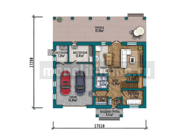 Дом из теплоблоков Солвик двухэтажный 14х14