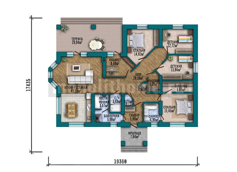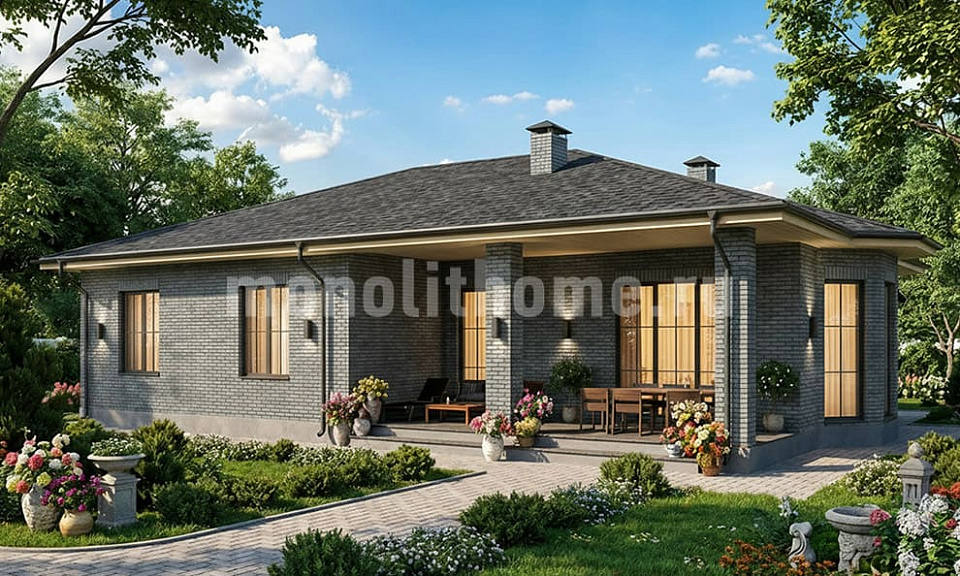 Дом из газобетона Илирик одноэтажный 15х15
