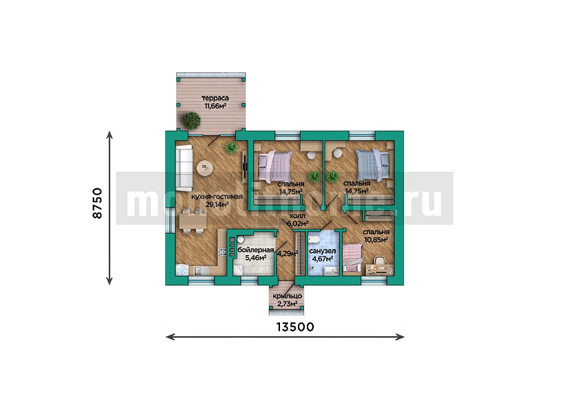 Дом из керамического кирпича Гранум 2 одноэтажный 13х13