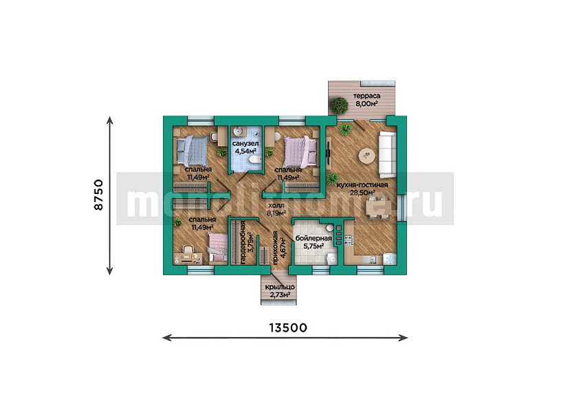 Дом из крупноформатных Тренд одноэтажный 8x12