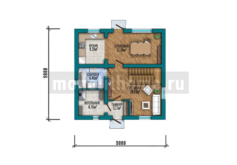 - Размер дома 9х9 м