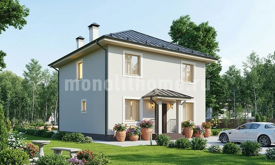 Дом из монолитного полистиролбетона Казак-2 двухэтажный 9х9