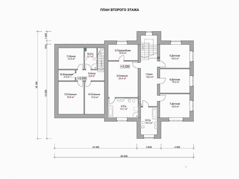 Дом из газобетона Мякинино 4 двухэтажный 13х13