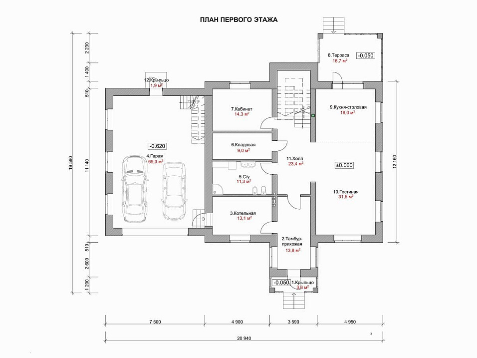 - Размер дома 12х12 м