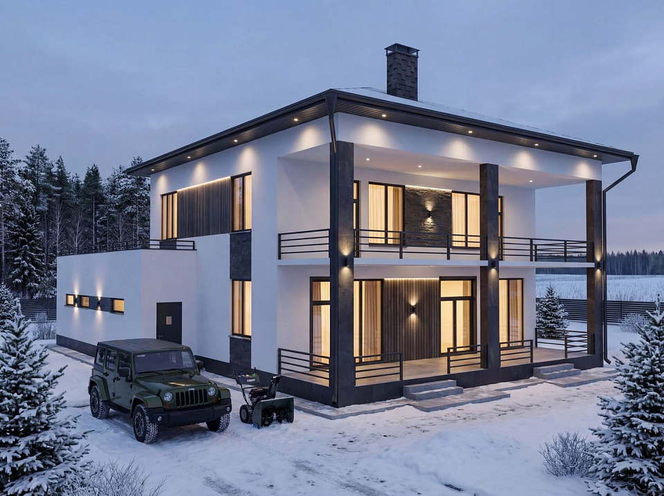 Дом на монолитном каркасе Мякинино двухэтажный 15х15