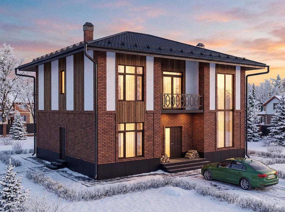 Дом из щелевого кирпича Гассен двухэтажный 12х12