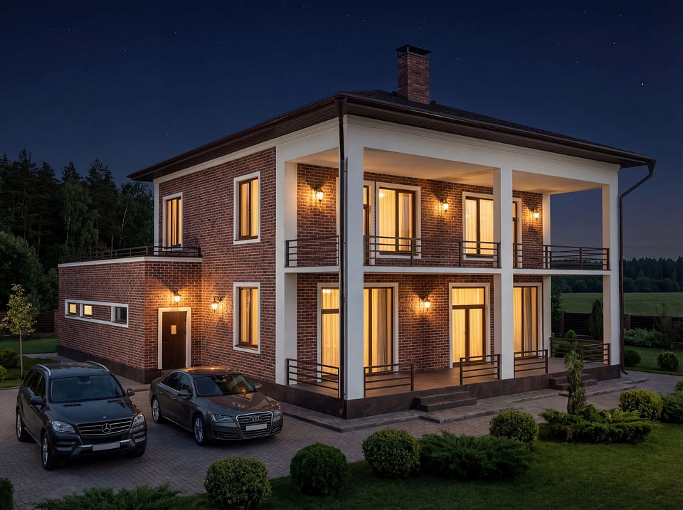 Дом из газобетона Мякинино 5 двухэтажный 13х13
