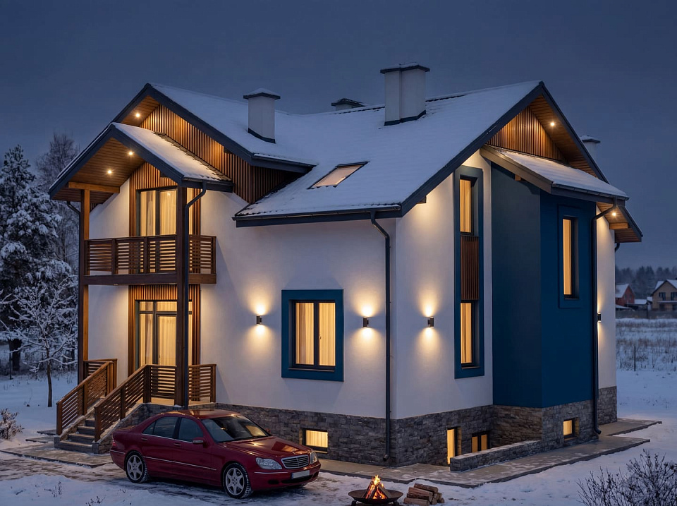 Дом из полистеролбетона Селигер 3 одноэтажный с мансардой 9x12