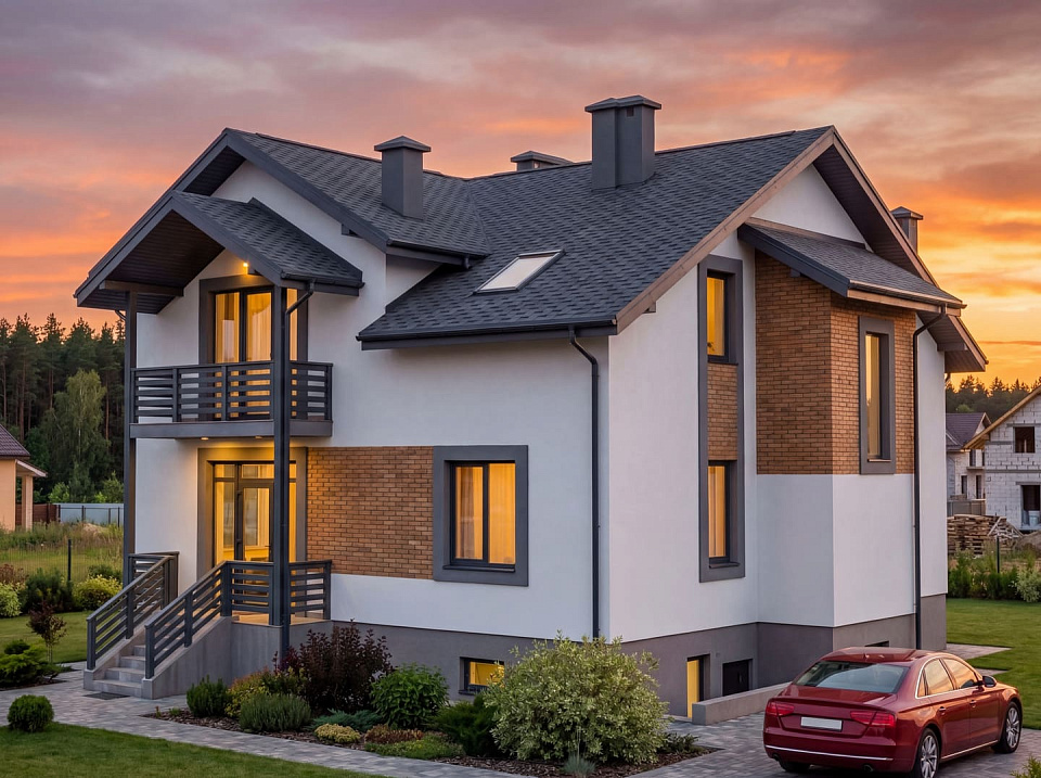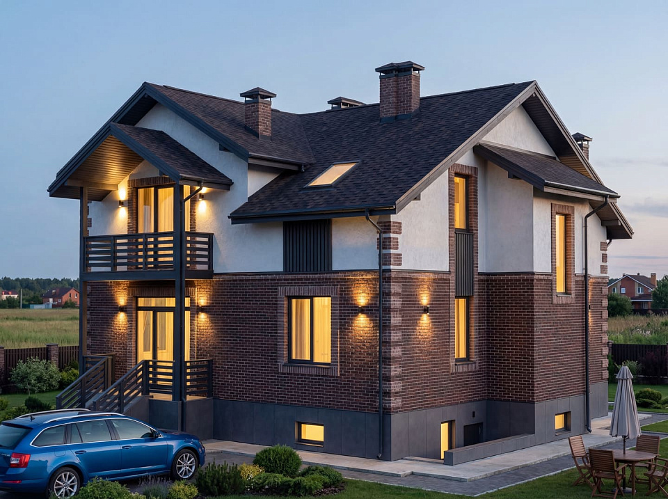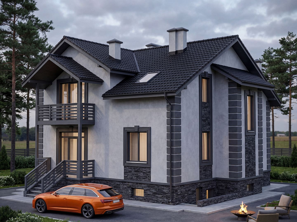 Дом из керамических блоков Шейк 5 одноэтажный с мансардой 12х12