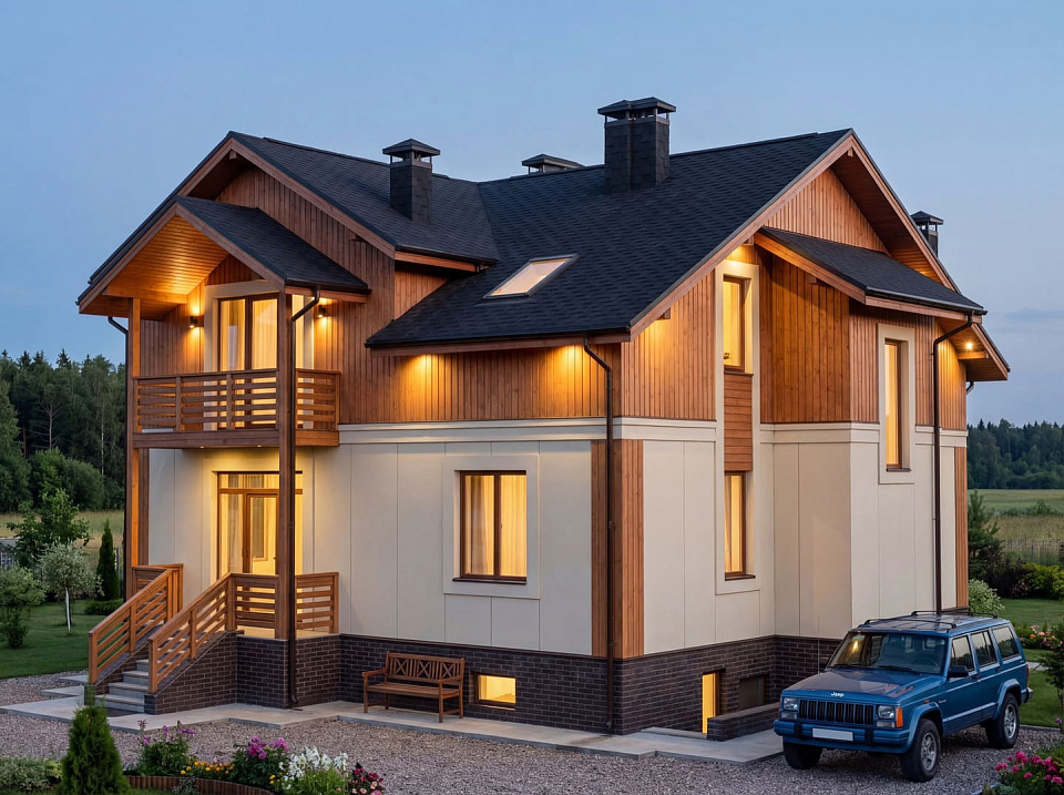 Дом из арболита Селигер 5 одноэтажный с мансардой 11х11