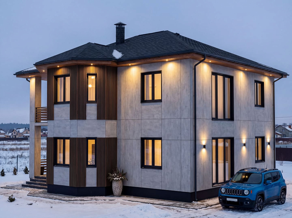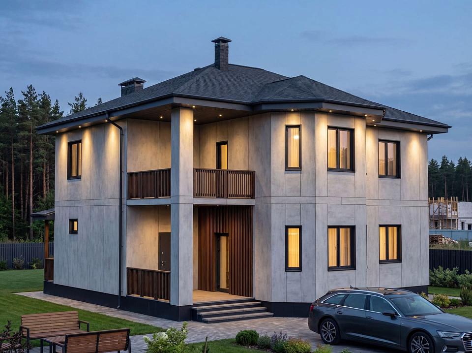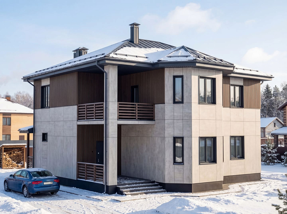 Дом из теплоблоков Завидово 2 двухэтажный 11х11
