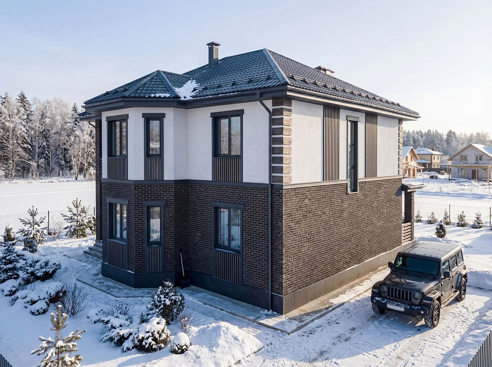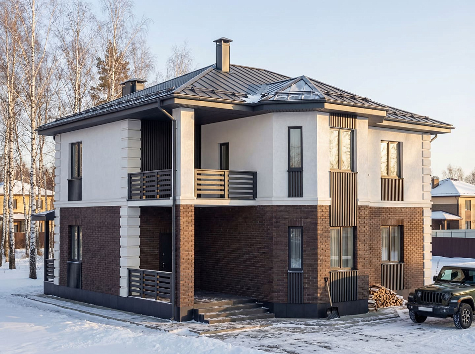 Дом из щелевого кирпича Аллар двухэтажный 14х14