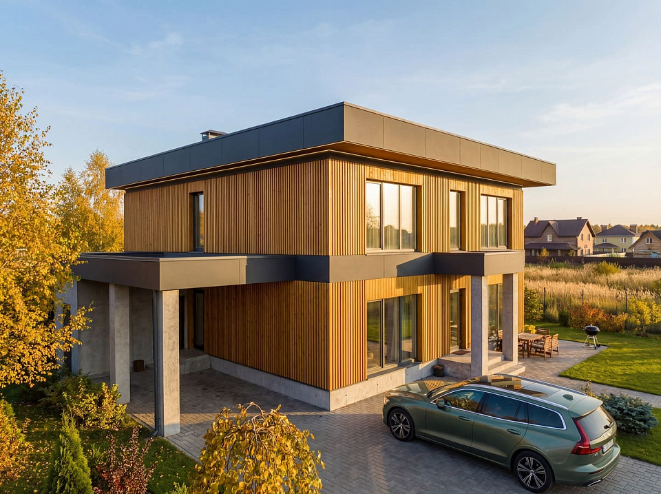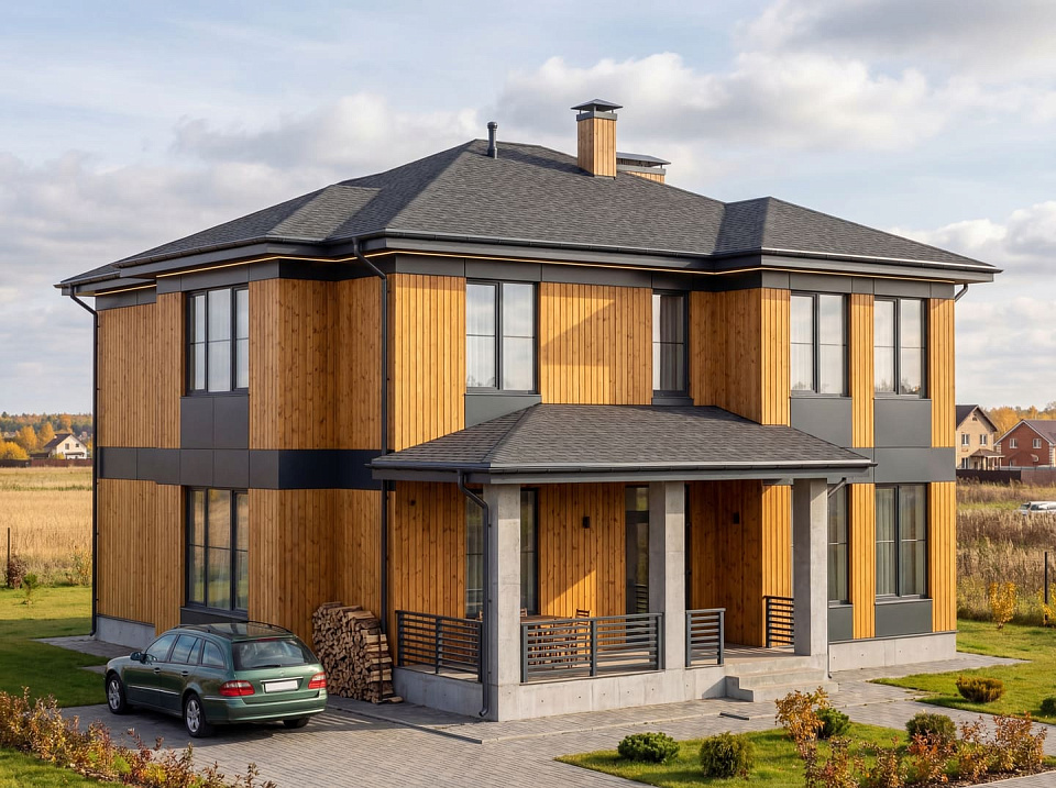 Дом из щелевого кирпича Вешки 2 двухэтажный 14х14