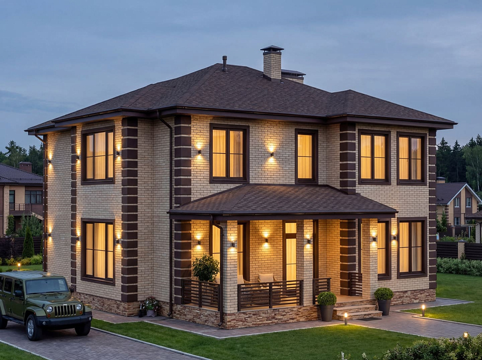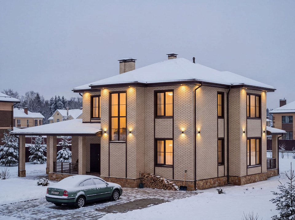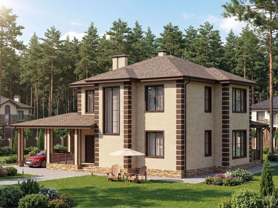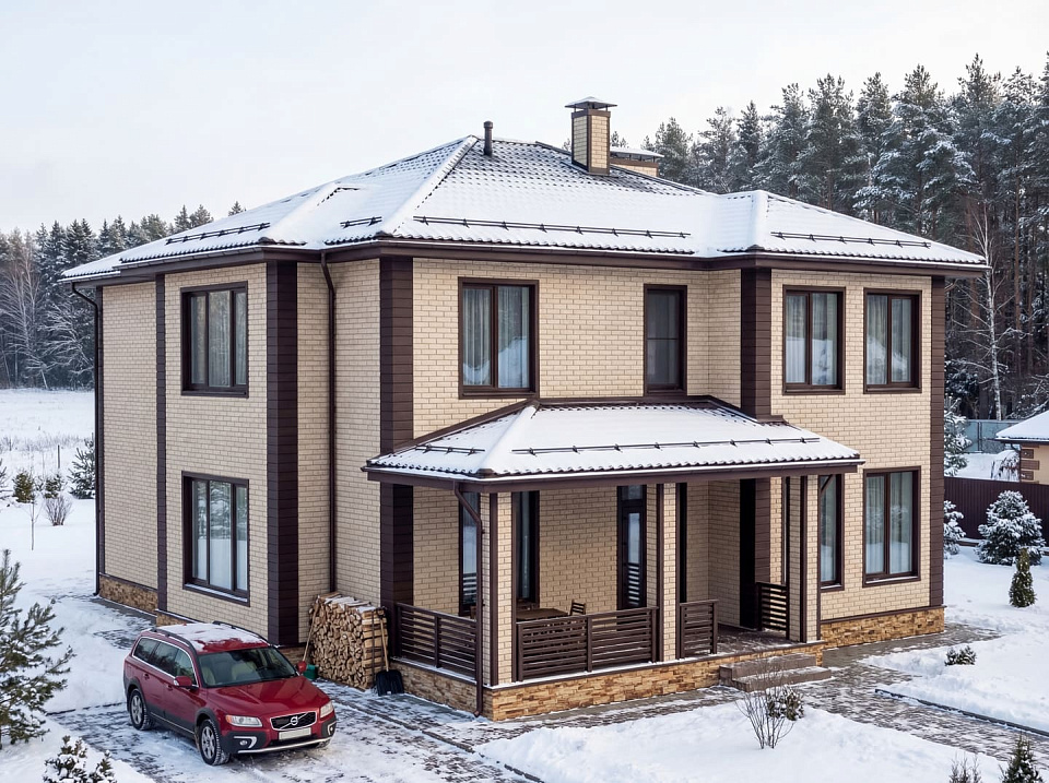 Дом из щелевого кирпича Вешки 2 двухэтажный 14х14