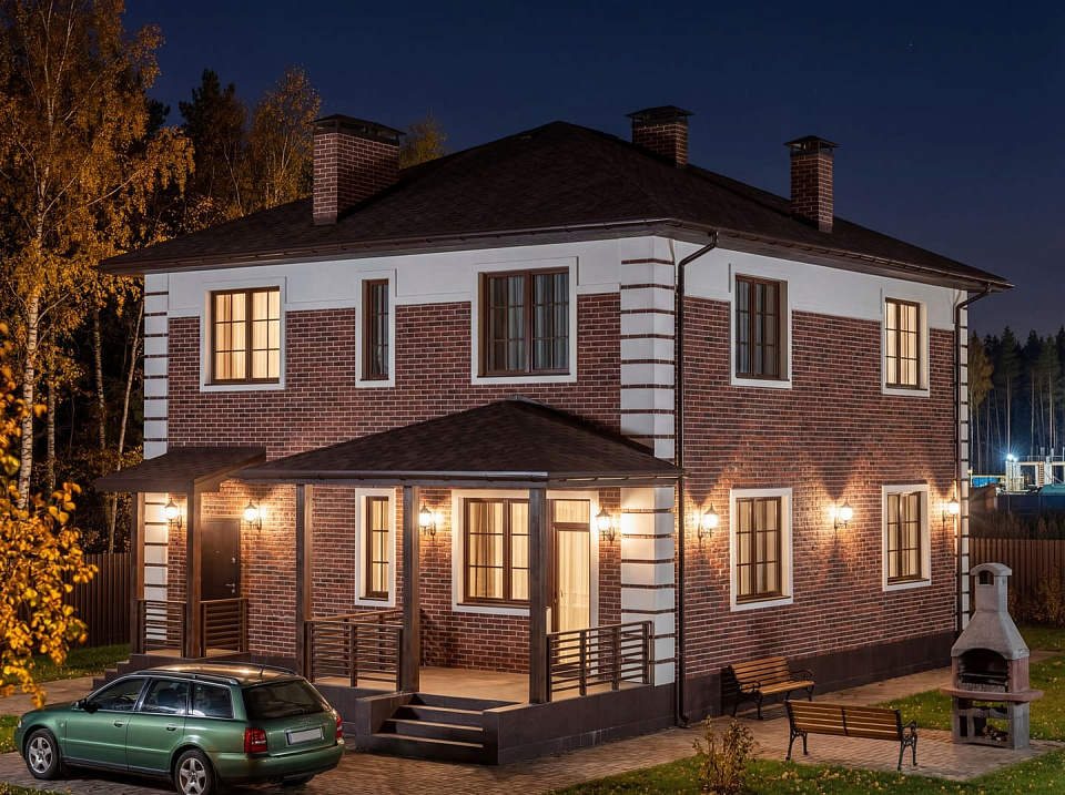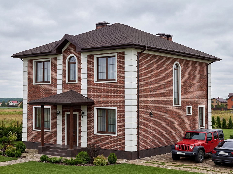 Дом из крупноформатных Полюс двухэтажный 13х13