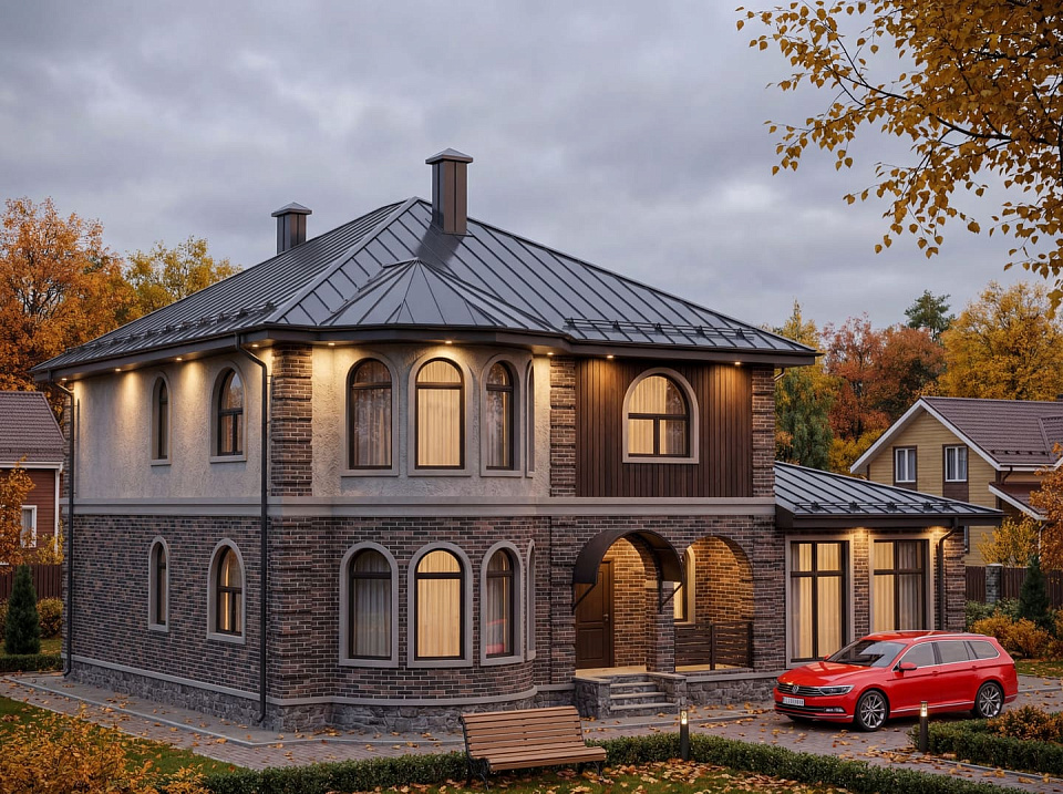 Дом из щелевого кирпича Вешки 2 двухэтажный 14х14