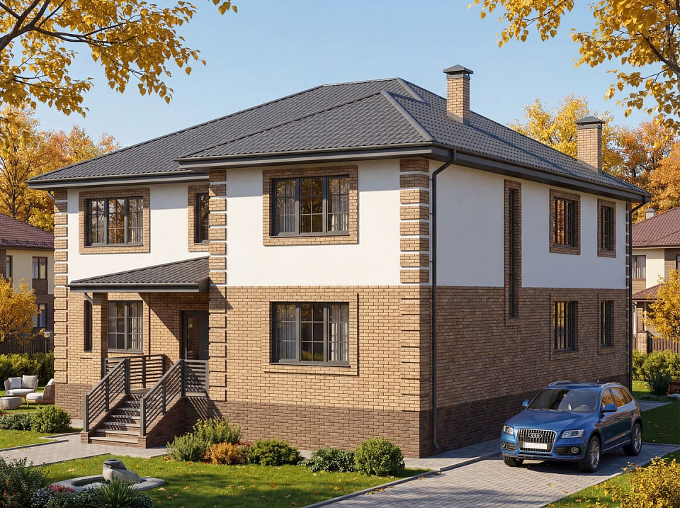 Дом из щелевого кирпича Мякинино 3 двухэтажный 12х12