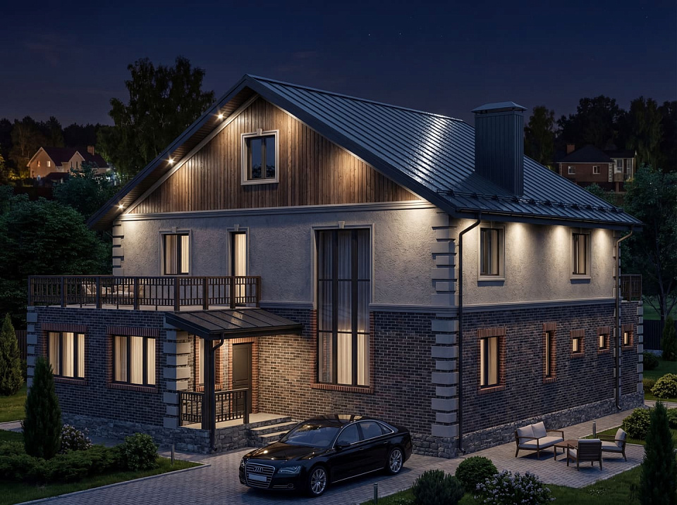 Дом из поризованного кирпича Клязьма 8 двухэтажный 15х15