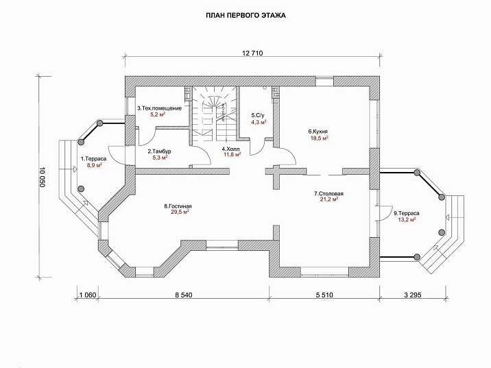 - Размер дома 13х13 м