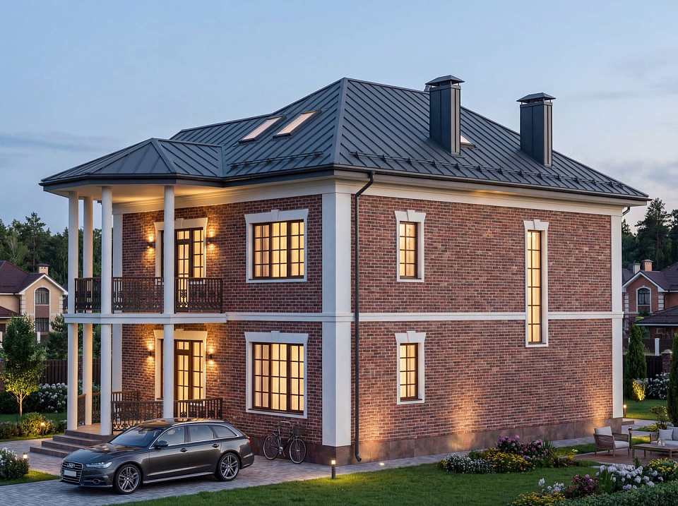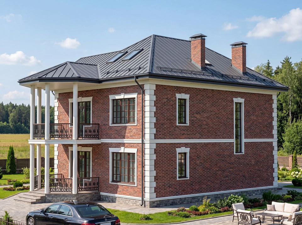 Дом из щелевого кирпича Шервуд 3 двухэтажный 14х14