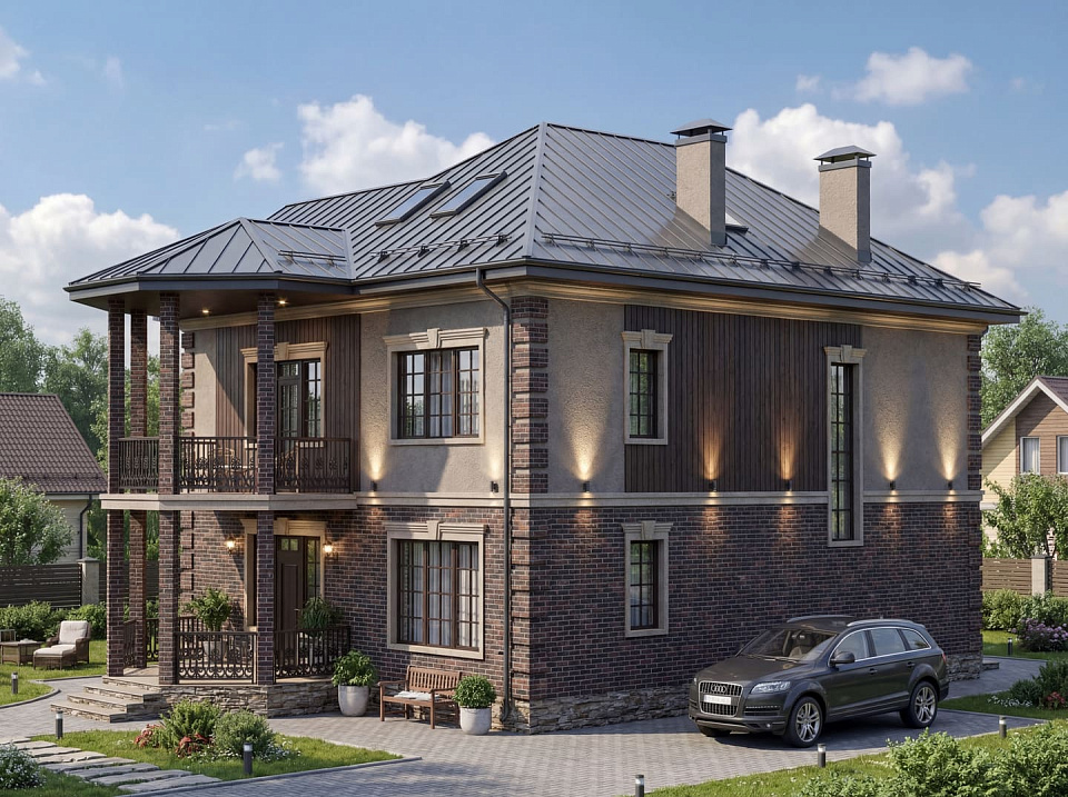 Дом из теплоблоков Шервуд 7 двухэтажный 12х12