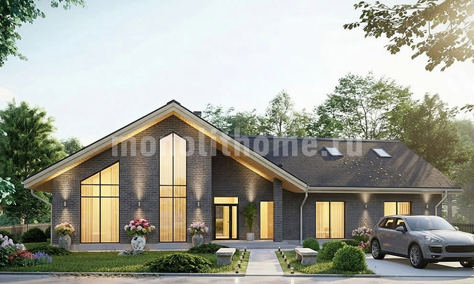 Дом из газосиликата Дарьино 7 одноэтажный с мансардой 13х13