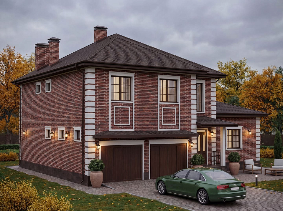 Дом из поризованного кирпича Гассен 4 двухэтажный 12х12