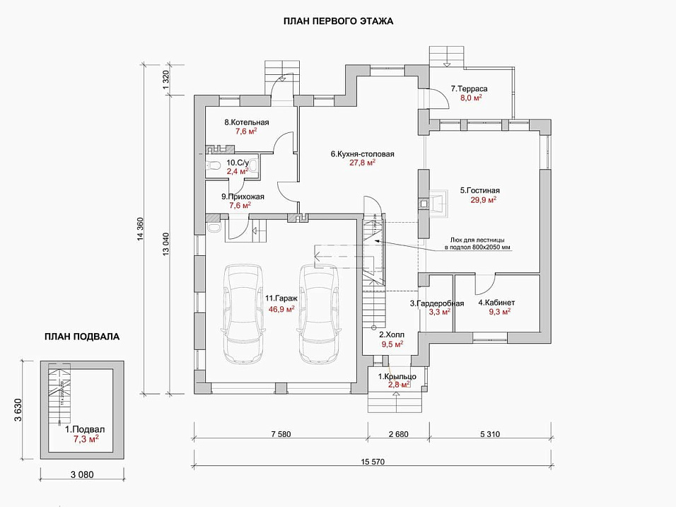 - Гараж на 2 машины нет