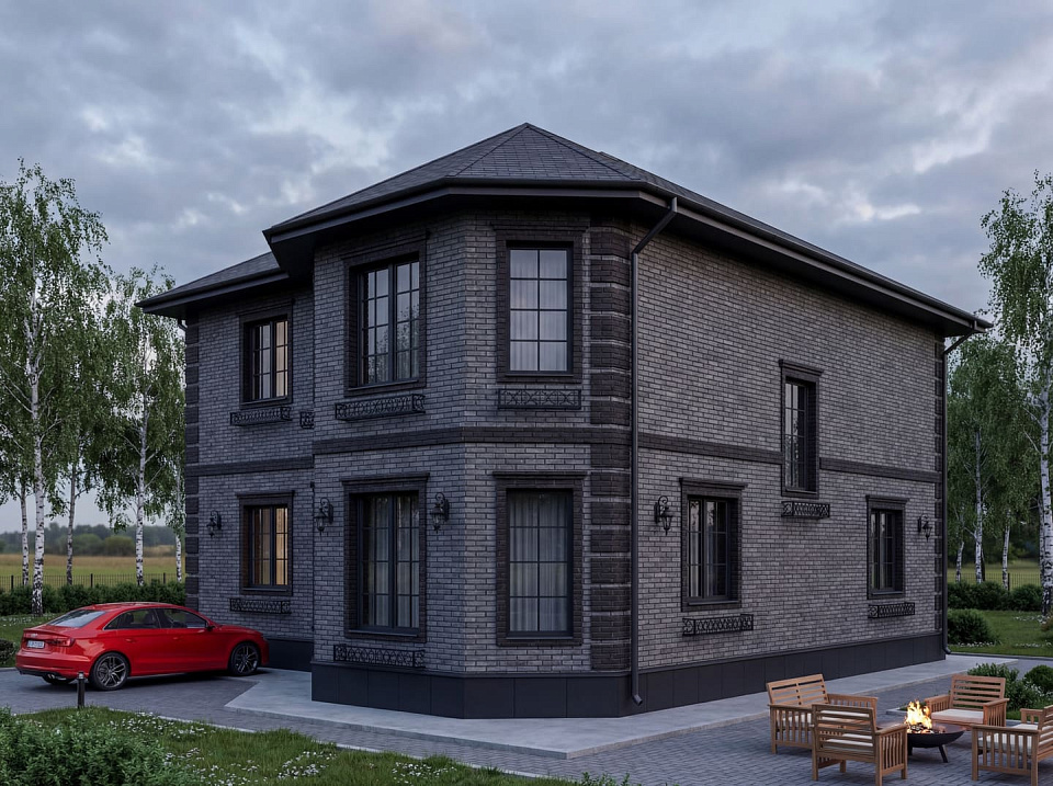 Дом из щелевого кирпича Вешки 2 двухэтажный 14х14
