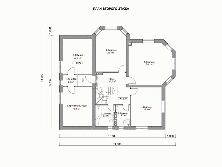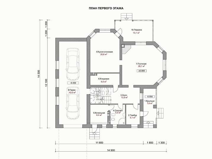 - Размер дома 13х13 м