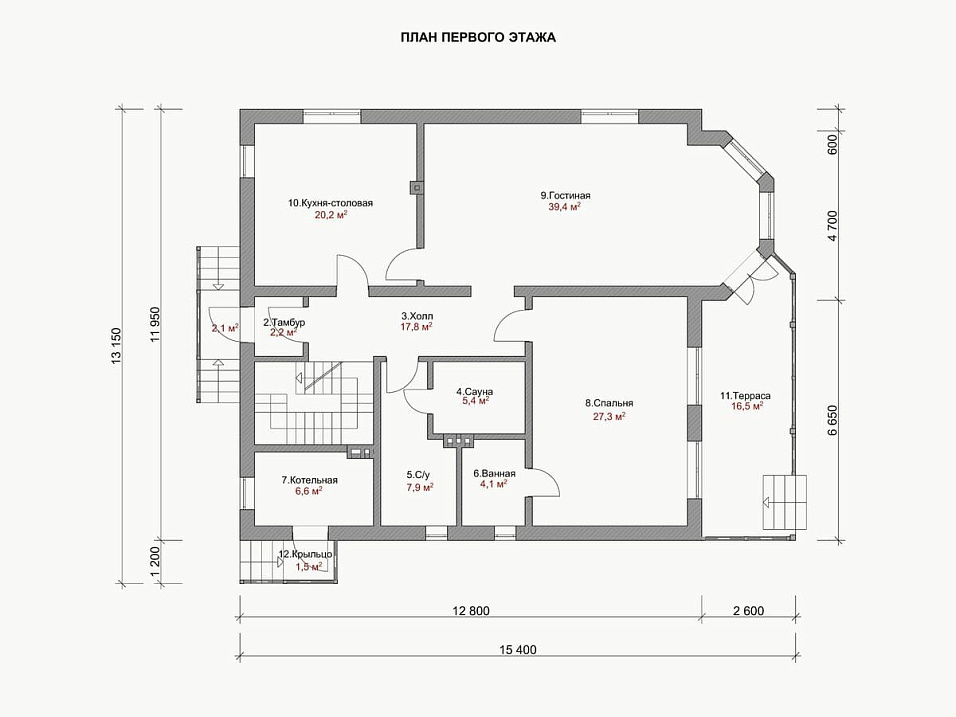 Дом из арболита Грюнвальд 10 двухэтажный 15х15