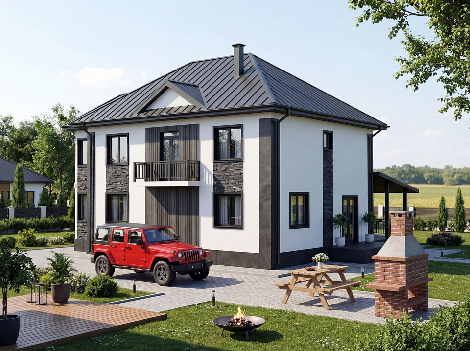 Дом из полистеролбетона Бор 7 двухэтажный 12х12
